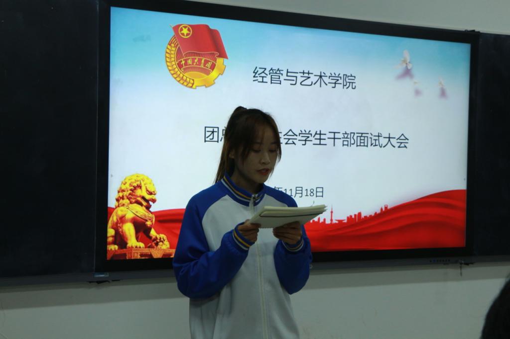 面试现场,面对评委的提问,应试者灵活应对,从容而自信,对所提出的问题认真作答。他们的言谈举止,流露出对团、学工作的真挚渴望及敢于表现自我的信心,展现出了良好的素质和修养,体现了当代老员工敢于挑战自我的信心和勇气。经过竞聘演讲、现场考察、提问作答3个环节的层层选拔,纳新工作圆满结束。