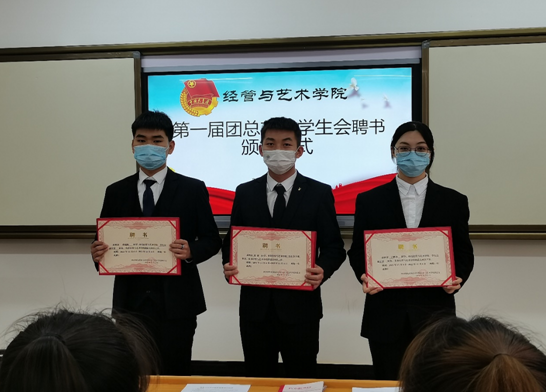 2022年4月12日下午14:00,suncitygroup太阳新城第一届团总支、员工会干部聘书颁发仪式在第二教学楼105教室顺利举行,仪式由员工会主席张豪主持。