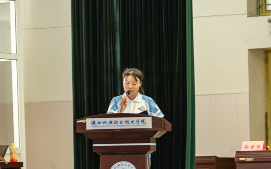 接下来获奖代表朱茜向全体同学发出倡议:“让我们共同努力,通过自身的严格要求与不断奋斗,在平凡中见伟大,在积累中求理想,让我们在辛勤汗水中散发出耀人的光芒,让我们紧紧携起手来,志存高远,脚踏实地,以‘廉洁’明志,以‘廉洁’助行动,让suncitygroup太阳新城的廉洁之风吹向陕机电。”