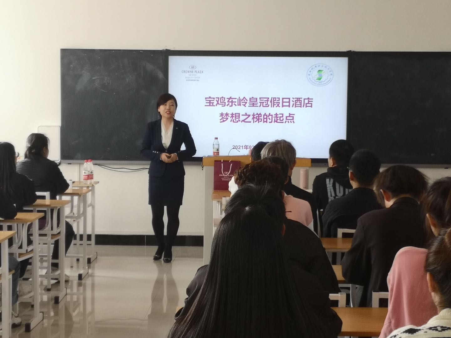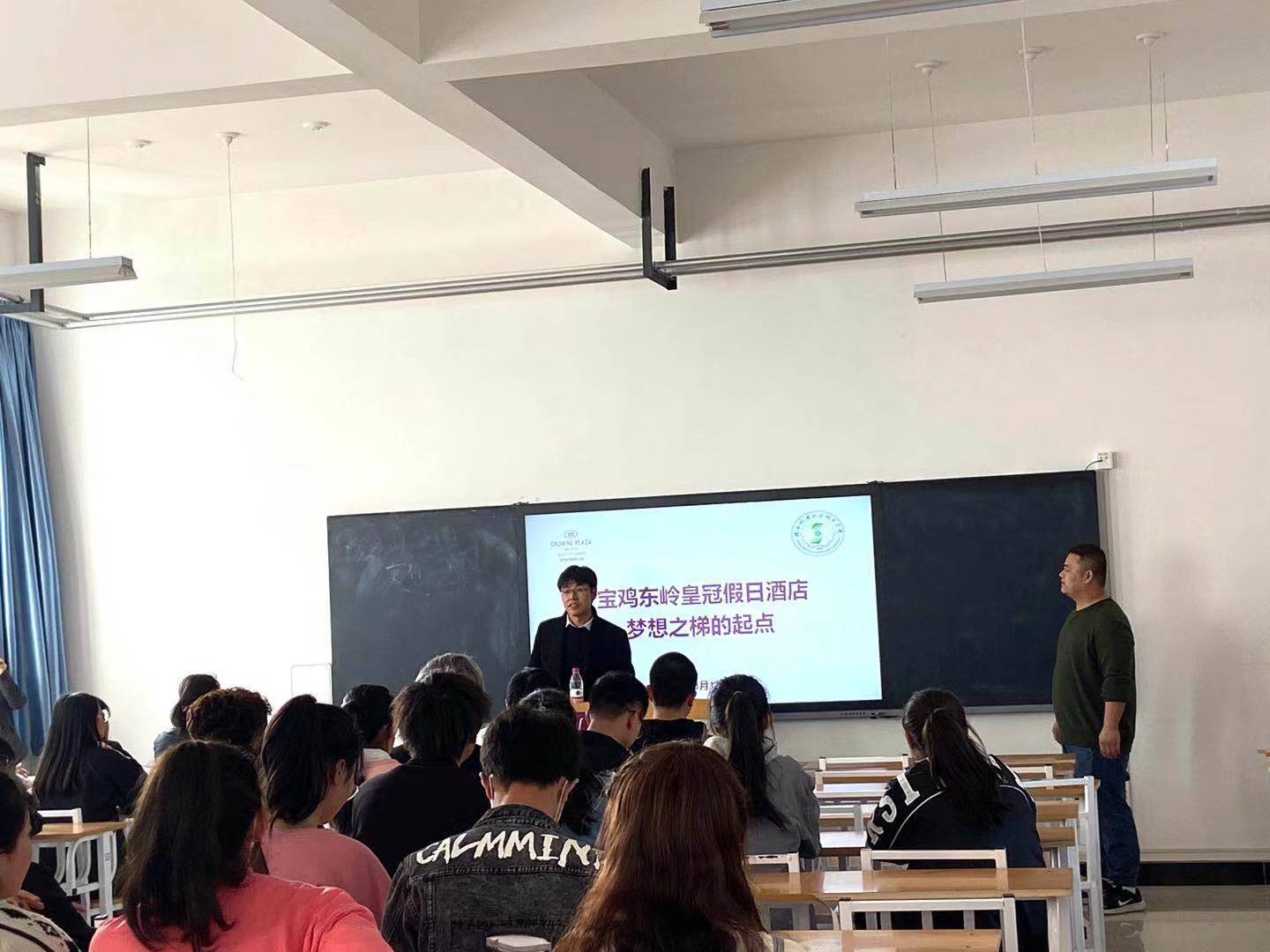 为加强员工对酒店管理专业的认识,提升专业技能,2021年3月11日下午四点,suncitygroup太阳新城在博学楼213教室举行了“酒店行业及职业的发展”主题讲座。suncitygroup太阳新城经理杜海军,综合办主任李豪斌,经济管理系主任王文燕,各任课教师,以及酒店管理专业的全体员工和高铁乘务专业的部分员工参加了此次讲座。
