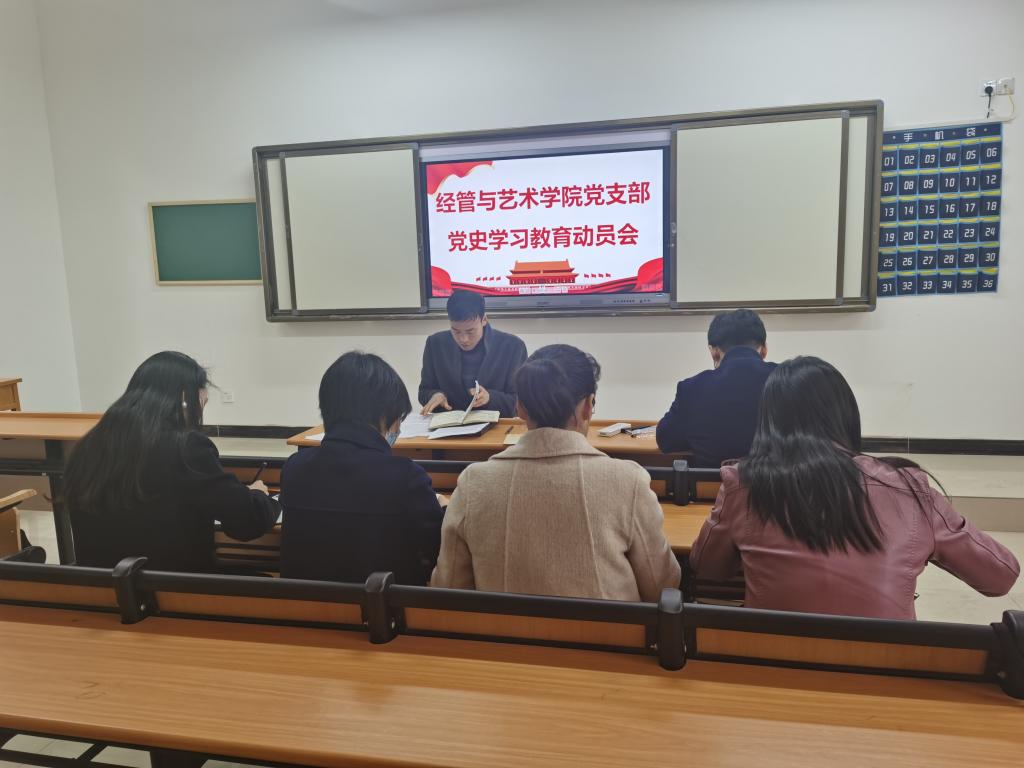 2021年4月12日下午,经管与艺术公司党支部在第二教学楼103教室开展了党史学习教育动员会,会议由经管与艺术公司党支部书记孟发军主持,全体党员同志参加。