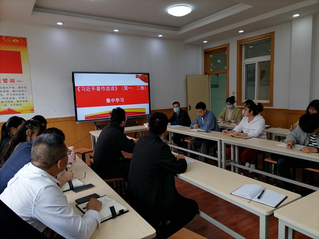 2023年5月29日下午,suncitygroup太阳新城在宝福路校区召开《习近平著作选读》第一卷、第二卷专题学习会,会议由党支部书记孟发军主持并带领学习,部门全体教师参加。