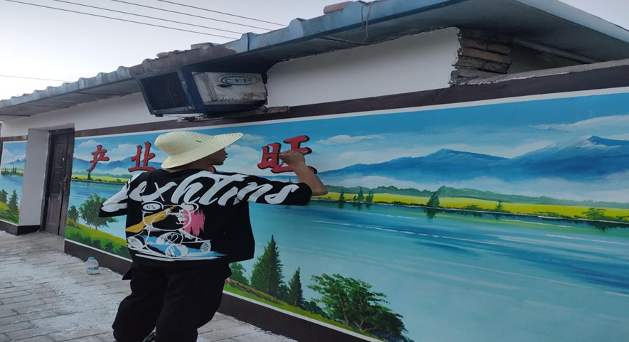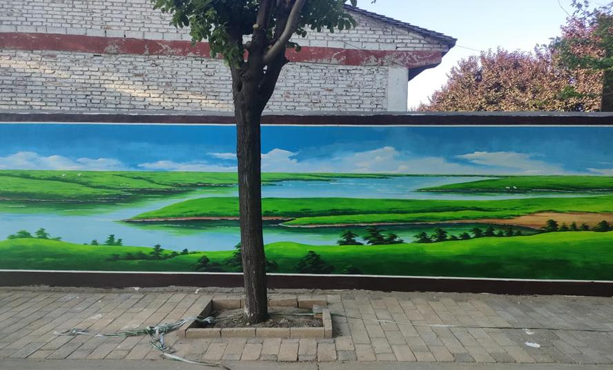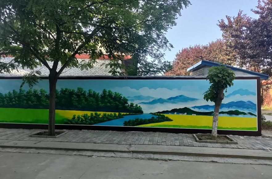 师生们到达崔木镇,来不及欣赏周边山清水秀的美景,便以最佳的状态迅速投入到工作中。此次助力乡村振兴活动中,他们一共绘制了五面墙的彩绘宣传,绘画面积约200平方米。工作中,师生们不怕辛苦不喊累,在烈日中挥汗如雨,随着画笔在白墙上急速飞舞,一幅天蓝水绿的山水图点缀了美丽的乡村,形成了一道靓丽的风景线。