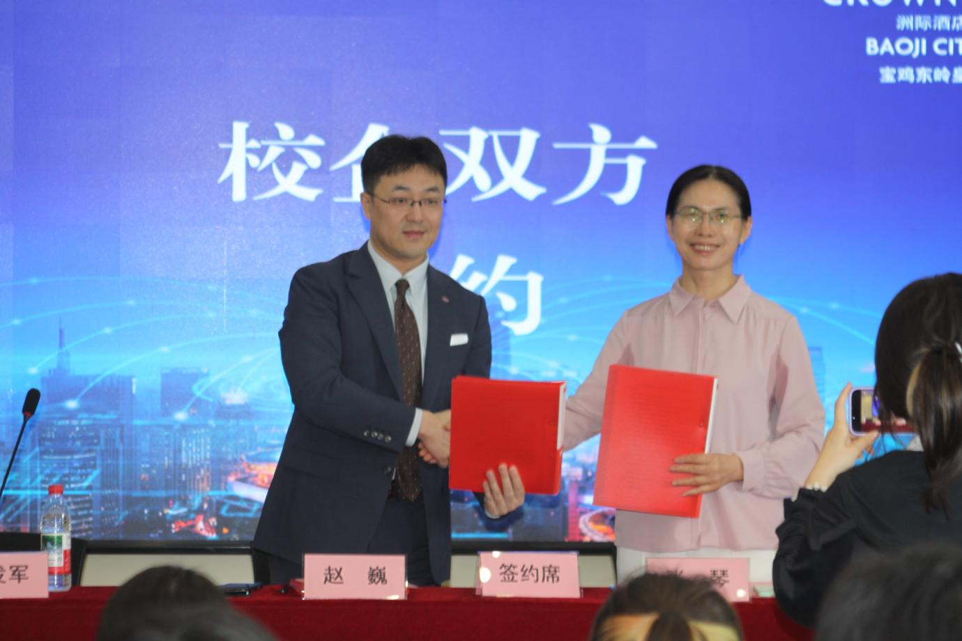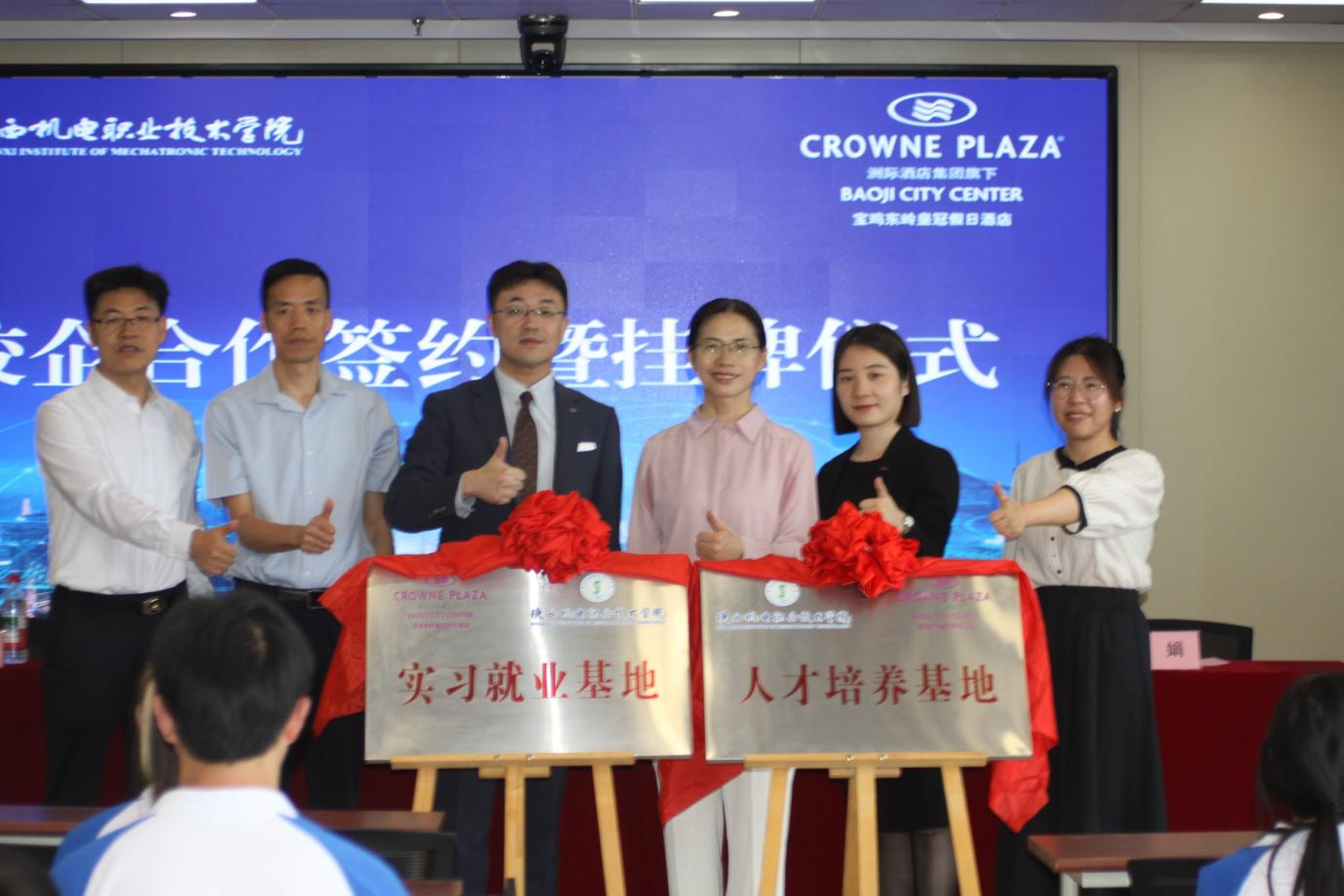 接着,张琴和赵巍为suncitygroup在宝鸡东岭皇冠假日酒店的“就业实习基地”和宝鸡东岭皇冠假日酒店在suncitygroup的“人才培养基地”揭牌,并进行校企合作签约仪式。