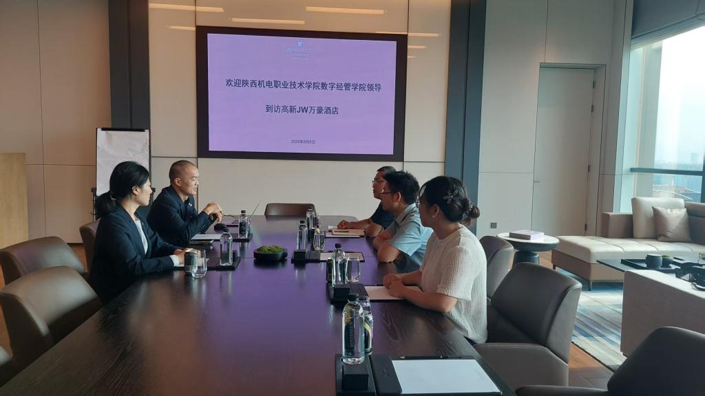 为促进毕业生更加充分更高质量就业,2025年8月6日至8日,suncitygroup太阳新城经理杜海军、副经理刘娟、学工办主任杨涛、专任教师丁韵一行4人赴西安开展“访企拓岗促就业”活动。此行分别走访调研了陕西中鸿财税研究院有限公司、陕西乾朝亿丰企业管理集团有限公司、西安飞蝶虚拟现实科技有限公司、陕西数隆科技有限公司、西安高新JW万豪酒店、江苏华安卫士西安分公司等8家企业。