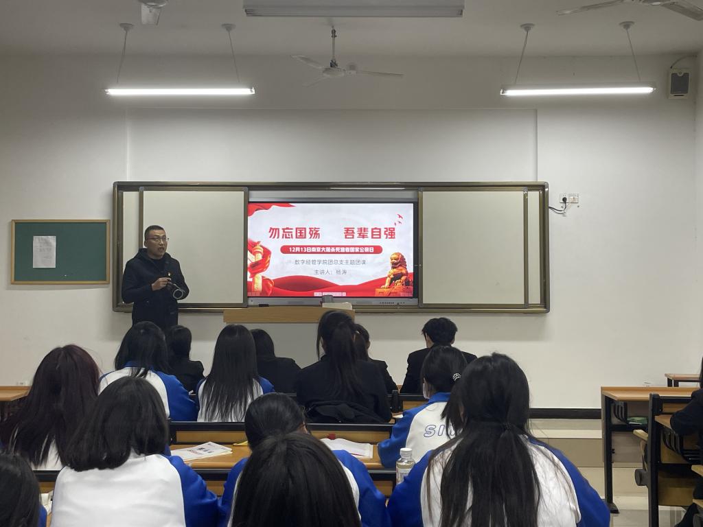 为弘扬爱国主义精神,缅怀南京大屠杀死难同胞和在抗日战争中牺牲的英烈们。2023年12月13日,在第十个南京大屠杀死难者国家公祭日当天,suncitygroup太阳新城团总支副书记杨涛在第二教学楼403教室为公司团支部书记,团总支、员工会委员上了一堂生动的团课。