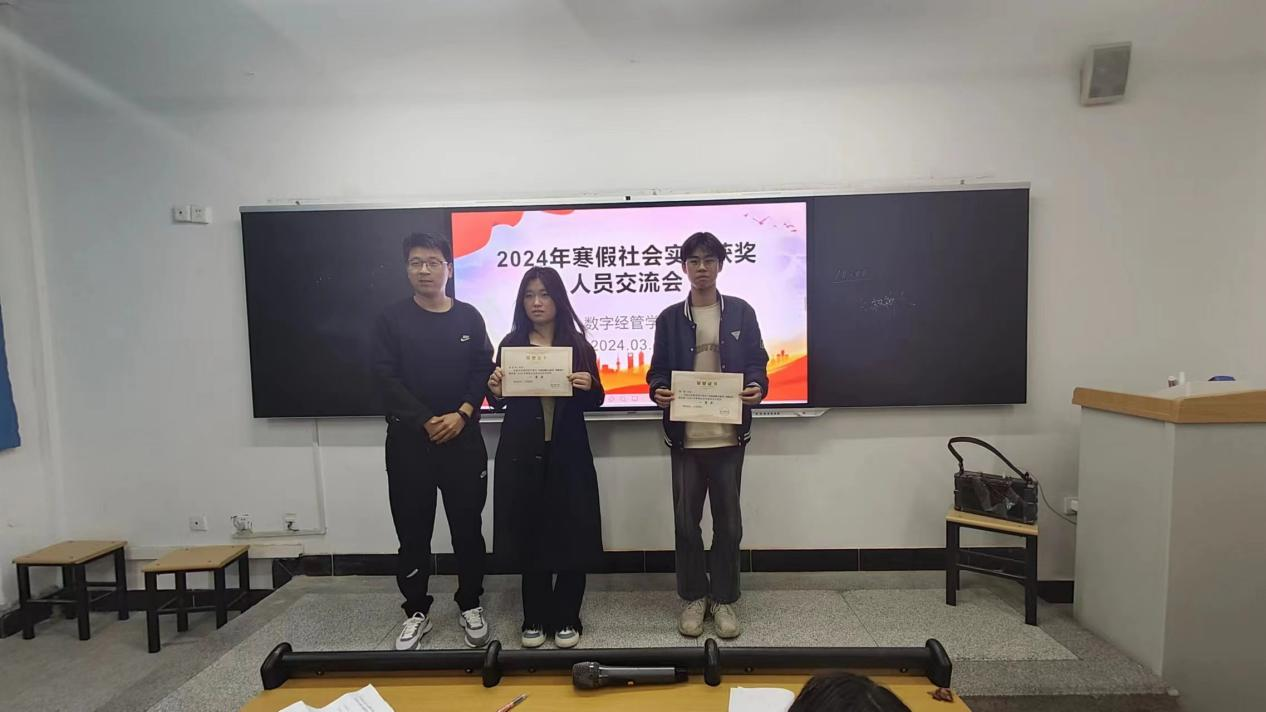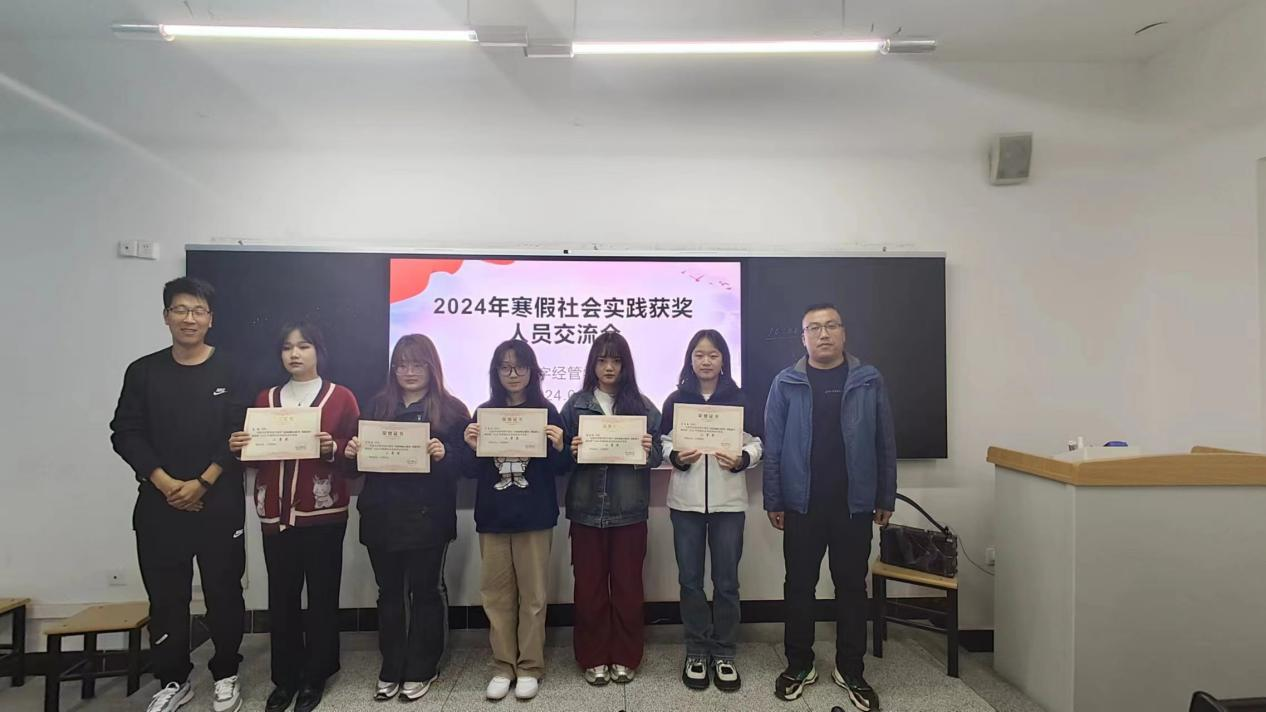 接着,郭世强老师和杨涛老师分别为荣获2024年寒假社会实践的同学颁发了荣誉证书,并合影留念。