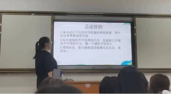 通过本次“诚信教育”主题班会,不仅使同学们充分的认识到了资助诚信的重要性,同时也让同学们学习到了有关法律知识,增强了法律意识、提高了道德品质。