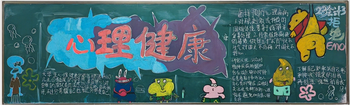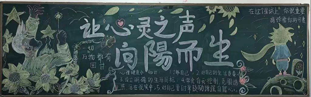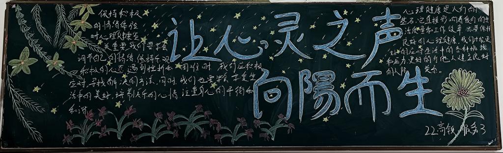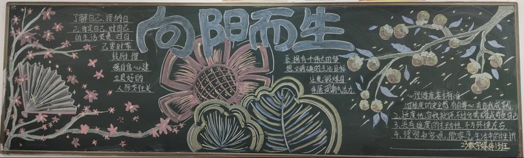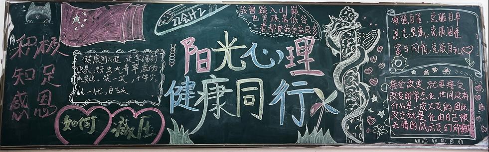 此次活动,各班的黑板报设计各具特色,内容丰富,精心设计的图案和内容详实的心灵小故事、自我调节方法,向同学们普及了心理健康知识。经过评选,共选出一等奖一项,二等奖三项,三等奖四项。一幅幅板报就是一颗颗积极阳光的心灵展示,温暖着每个人,鼓舞着每个人,让心灵充满了愉悦,促进了员工健康成长。