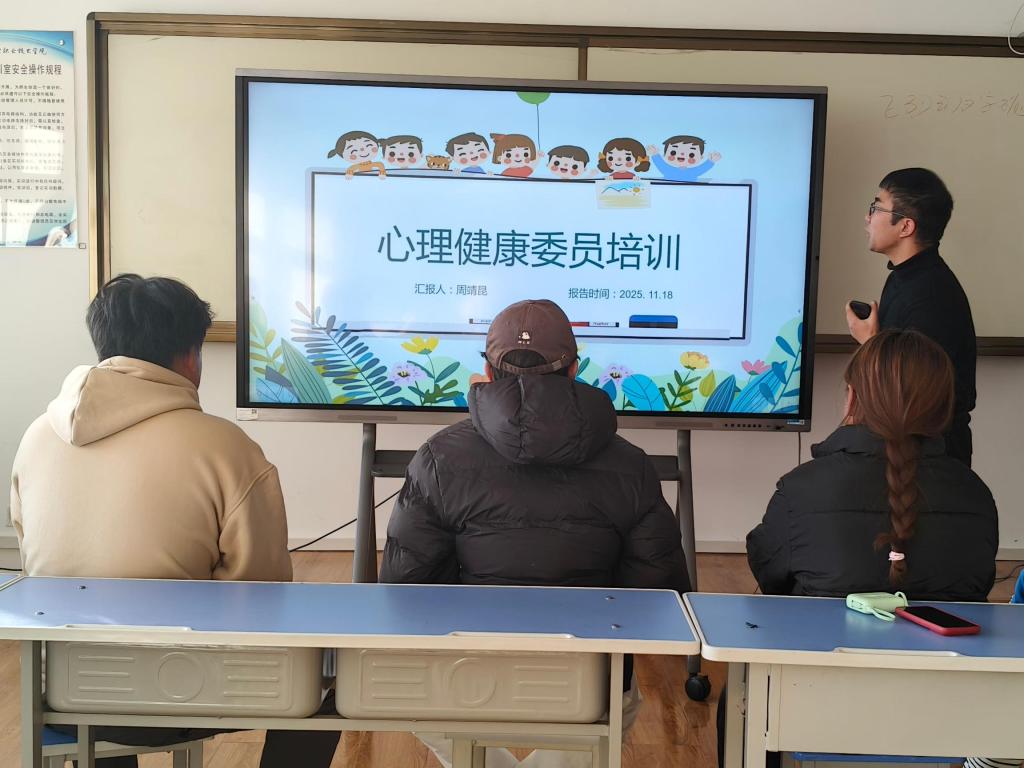 11月18日下午,各班心理兼宣传委员共同参与了周靖昆老师的专题培训。培训中,周老师一方面聚焦心理健康教育工作,讲解了老员工常见心理问题识别、情绪疏导技巧及心理危机干预流程,引导心理委员们关注同学心理健康,搭建起班级心理防护网;另一方面围绕宣传工作实务,从文案撰写、活动摄影等方面展开教学,帮助宣传委员们提升宣传能力,更好地传递班级正能量、展现班级良好形象。