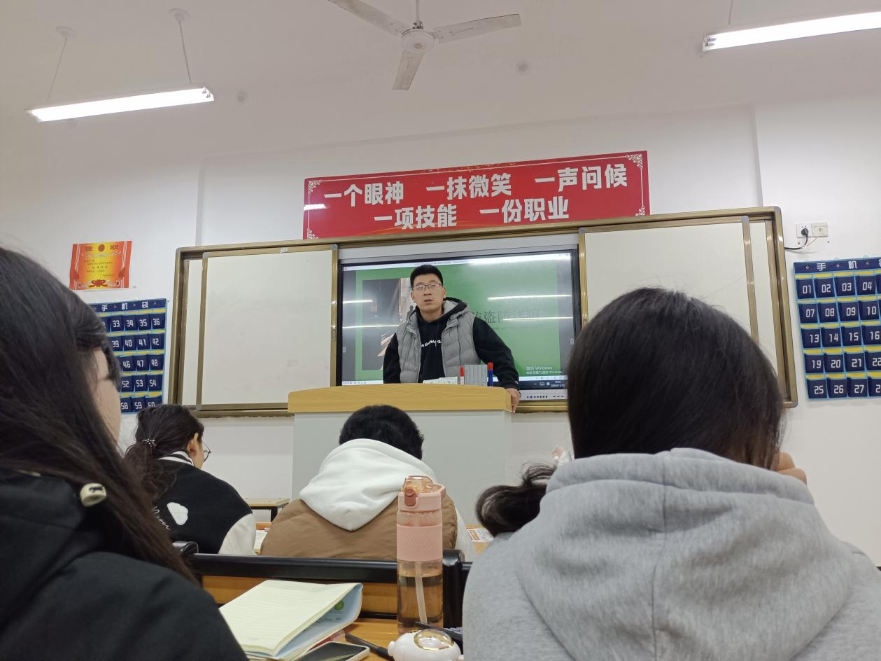 各班级通过PPT、视频等形式,详细讲解了防火、防盗、防诈骗的基本常识。首先强调了基本的灭火知识和逃生技能,并教同学们学会正确使用灭火器。其次讲述盗窃也是我们生活中常见的安全隐患。“随手锁门举手之劳,防偷防盗事关重大。”无论是家庭还是公共场所,我们都要时刻保持警惕,加强防盗措施。最后,强调诈骗更是一种让人防不胜防的犯罪行为。为了防范诈骗,我们要提高自我保护意识。陌生电话要警惕,不明来源的链接不要点击,不随意透露个人信息和银行账号密码,尤其是在网络上。我们要保持理性思维,记住天上不会掉馅饼,只有通过辛勤劳动和合法途径获得的财富才是可靠的。
